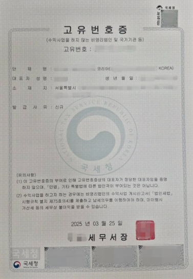 (5) 고유번호증 발급 (행정사가 위임을 받아 발급해 드립니다.)