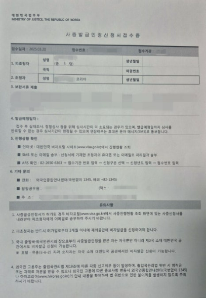 (1) 사증발급인정신청서 (행정사가 작성방법 안내해 드립니다.)