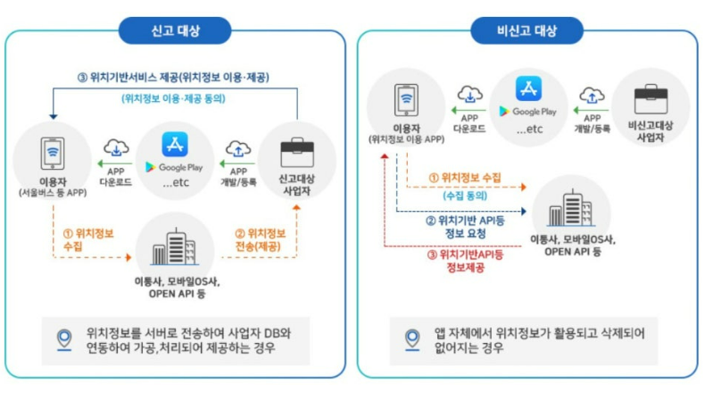위치기반서비스 사업자의 경우 일반 사업자와 소상공인 및 1인 창조기업 사업자의 차이를 두고 있는데요.