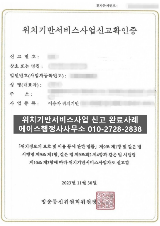 안녕하세요. 위치기반서비스사업 신고 전문 에이스행정사사무소입니다.