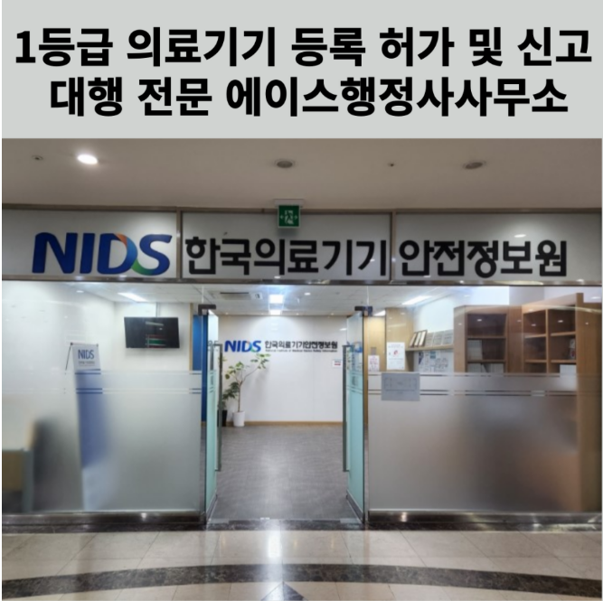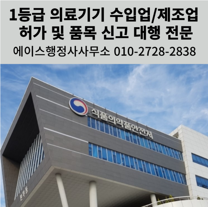 1등급 의료기기 수입업, 제조업 허가 및 품목신고 대행 전문 에이스행정사사무소입니다.