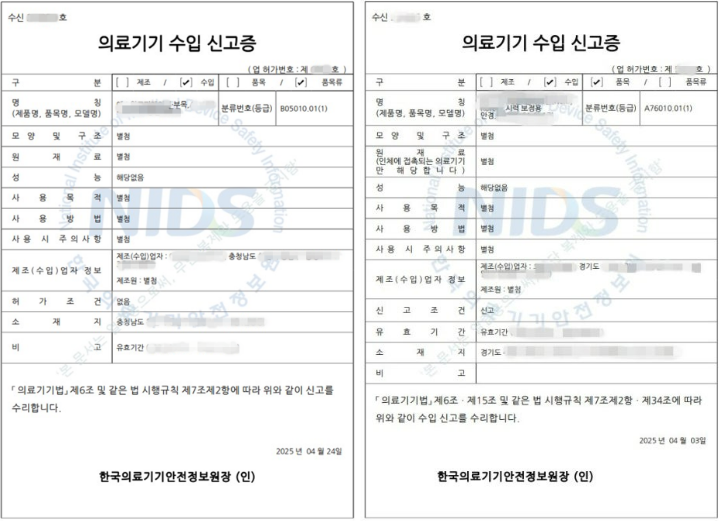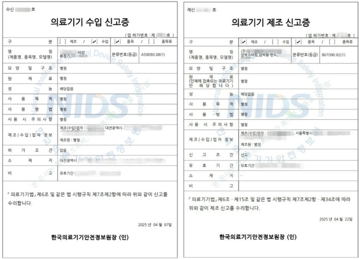 3~4월에도 많은 의뢰인분들의 1등급 의료기기 수입업, 제조업 및 품목신고를 완료해 드렸습니다.