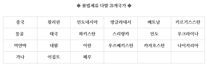 아래에 나와있는 법무부 고시 21개 국가에 해당되지 않는 다면 B1,B2,C3비자로 입국하여 국내에서 E7비자 자격변경을 신청해 볼 수 있습니다.