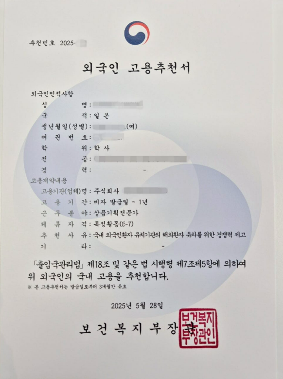 2. 병원 및 병원 관련회사에서 외국인 해외 마케팅전문 인력을 채용하기 위해서는 우선 보건복지부의 고용추천서를 발급 받아야 합니다. 고용추천서를 신청 할때에는 회사 및 외국인 양측에서 많은 구비서류를 준비해야 합니다. 서류들이 생소하고 작성 방법이 어려워 회사에서는 갈피를 잡지 못하는 경우가 많습니다.